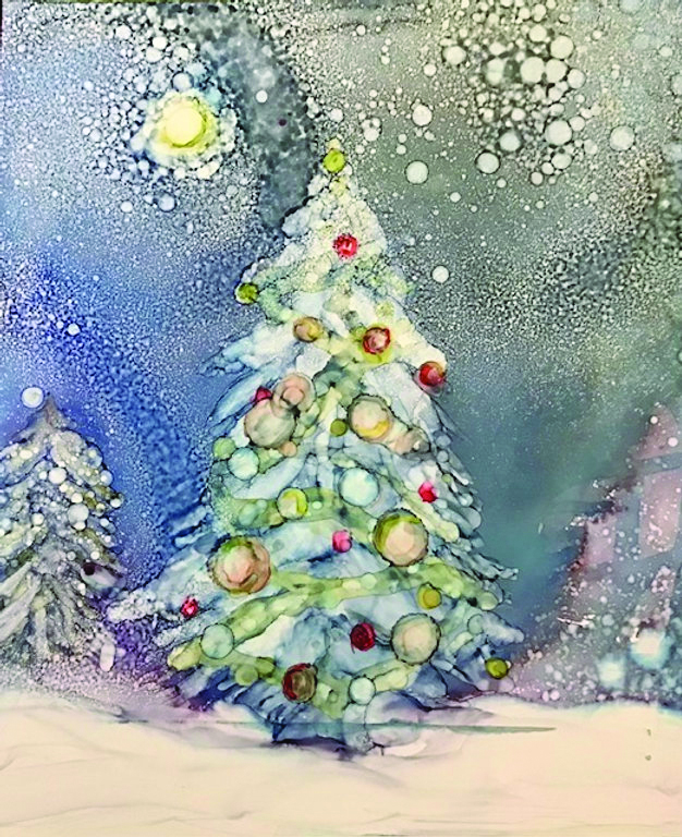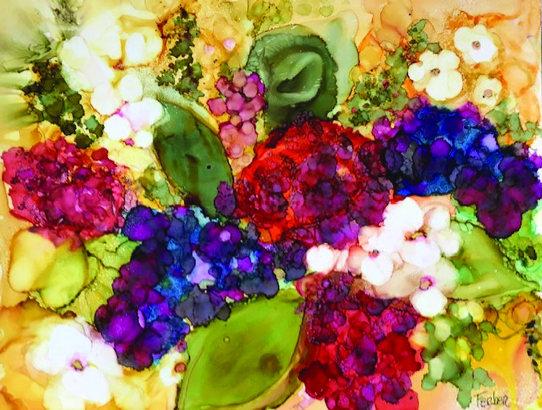 Today, Ferber works in watercolor, acrylics, and alcohol ink. She said she is always eager to learn new techniques and express her love of color and form.